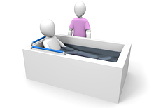 看護職員・介護職員がご自宅を訪問、介護専用浴槽をご自宅へ運び、入浴させてくれます。