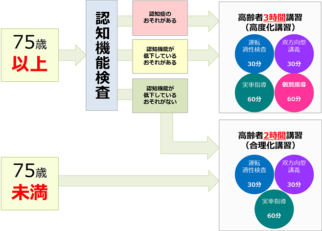 「認知機能の低下のおそれがある」場合には【高齢者3時間講習】の受講義務、「認知症の可能性がある」場合には医師の診断書の提出が必要になる、など、さらに厳格になりました。