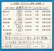 | 背の低い母の為にミニサイズを探していて偶然オカセイ様を見つけました。品物は中古とは思えない程スムーズな動きで全く問題ありません。しかも歳末スペシャル価格で新品マットレス付き!!お年玉を頂いた気分です。来週母が退院します。 | 足を骨折した為、入院して手術をしました。早く退院したい為に購入しました。寝起きが楽で助かります。 | 最善の対応をして頂き、本当に感謝しております。ありがとうございました。 |