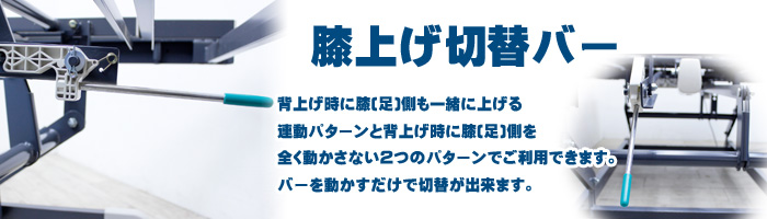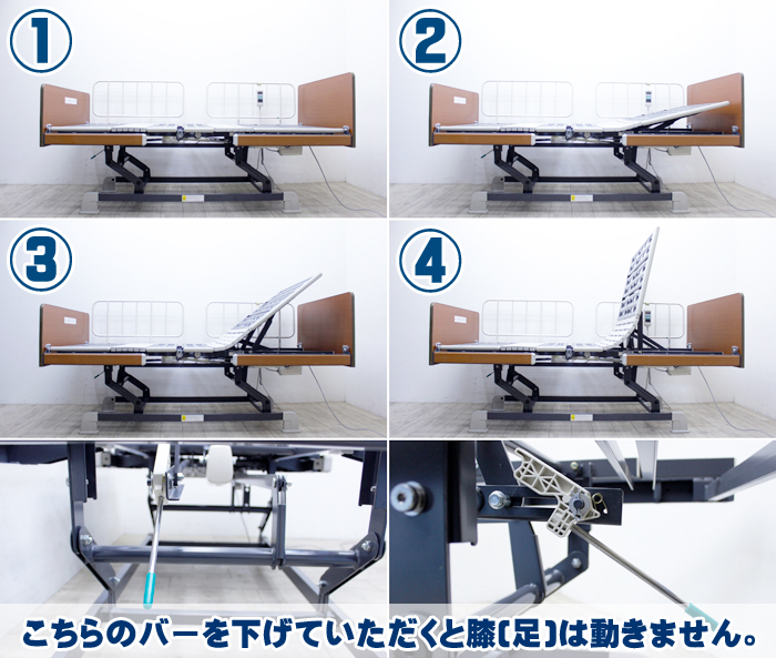 ※2モーターベッドの為、足単独動作は出来ません。背上げと連動して足(膝)を動かすことも出来ます。(0〜20°) もちろん頭を上げるときに足を動かさないことも出来ます。手動で調整が出来ます。
