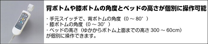 高さ調節は介護を受けるときにスタッフの方が作業をやりやすくするために利用できますし、患者さんが睡眠時の落下や不安を回避することができます。
