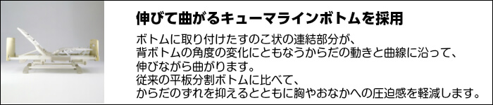 しかもこのベッドは調節機能そのものがゆるやかで腰や膝に負担がかからないように角度を自動調整してくれますので、安静にしていなければならない患者さんでも少しずつ起き上がることができるようになっています。