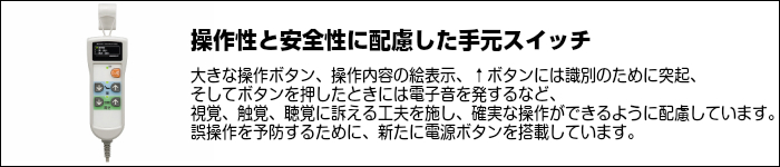 手元のスイッチは液晶表示付であり、より操作性に優れて楽な操作を実現しています。