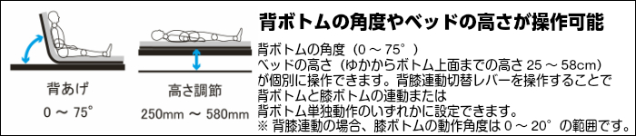 新楽匠2モーターは、背上げとベッドの高さを調整することができます。